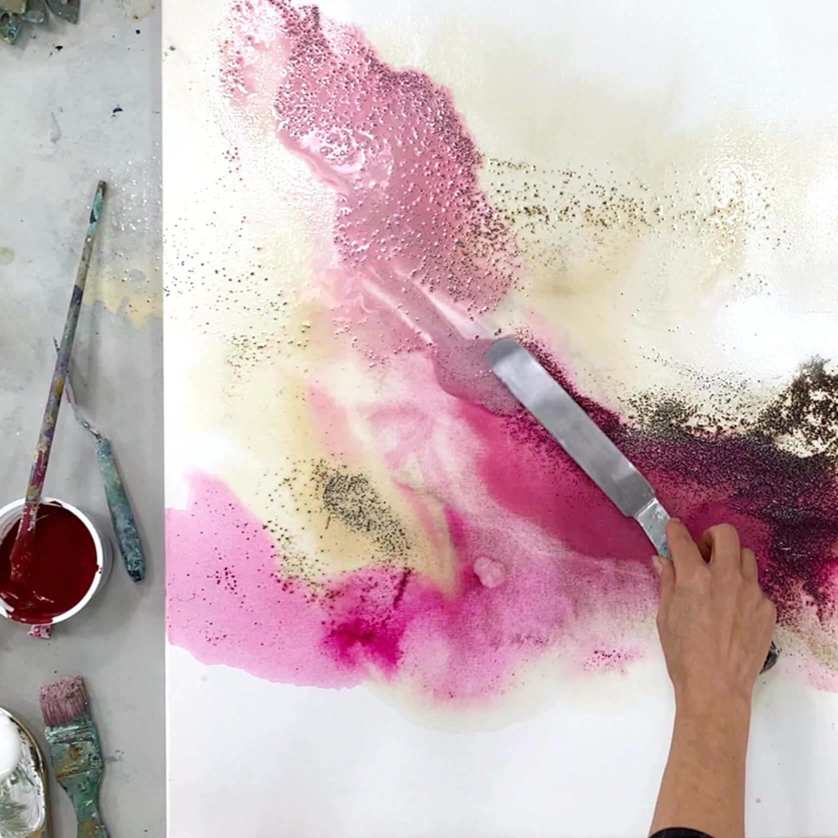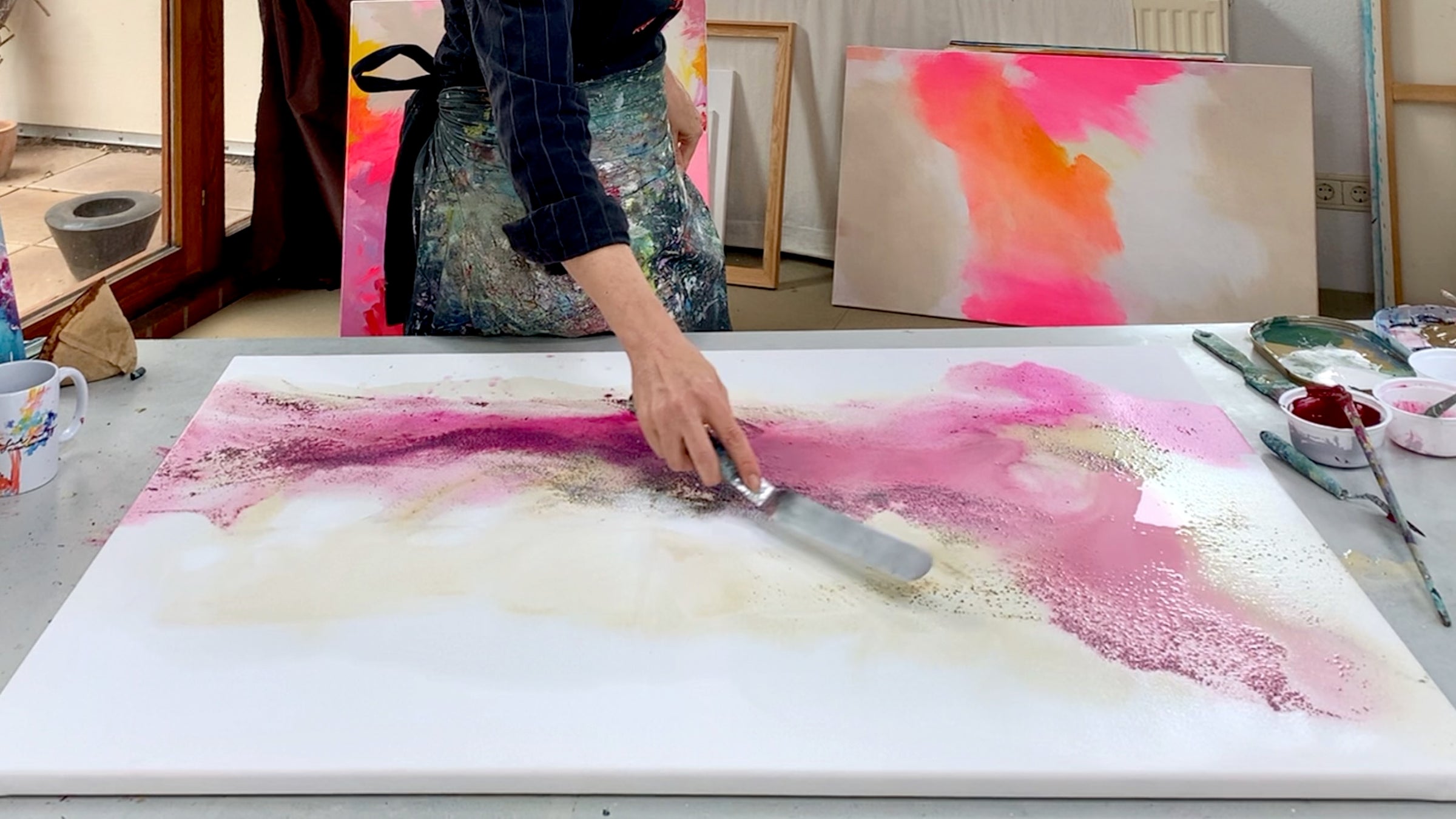 Bei Künstlerstreich fließt vieles zusammen: handgemachte Farben, intuitive Prozesse, Techniken aus der Ölmalerei, übertragen in die Gegenwart.