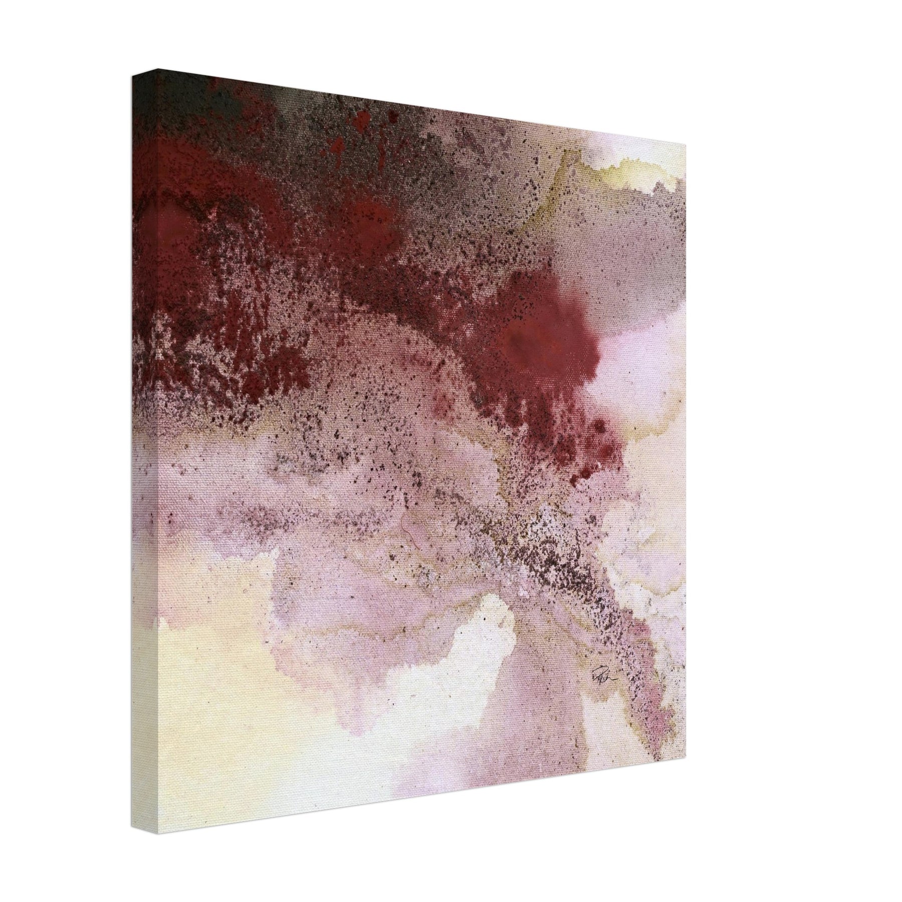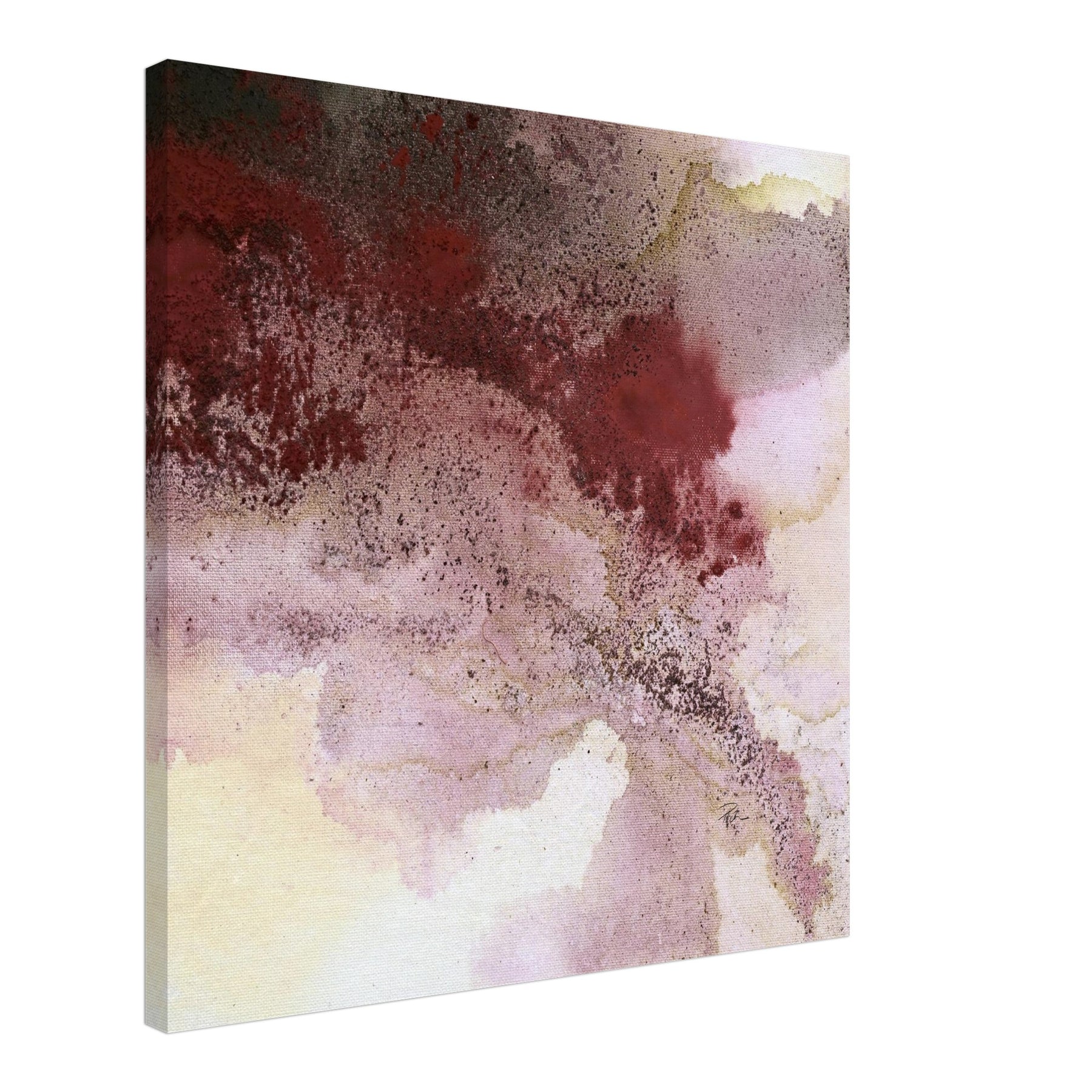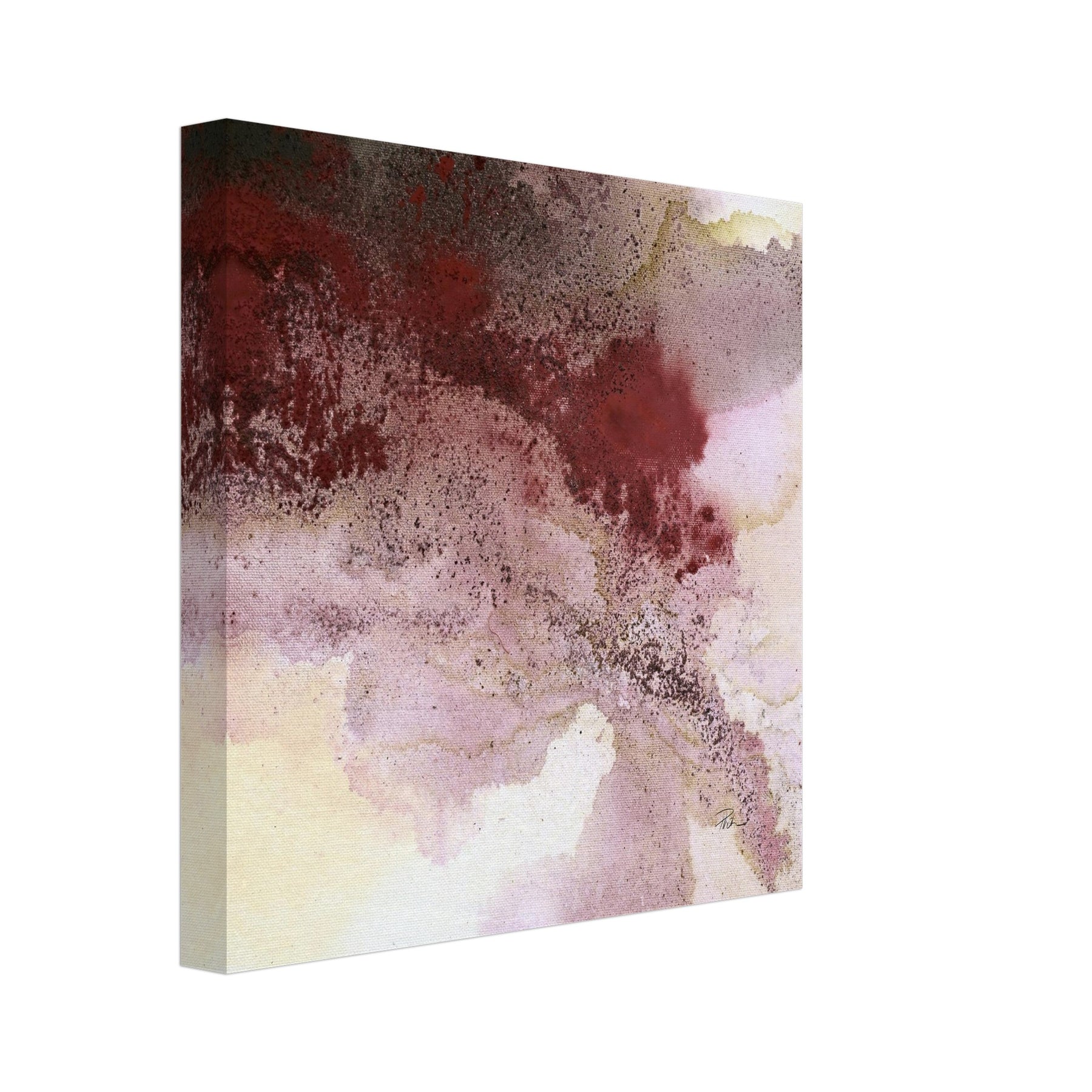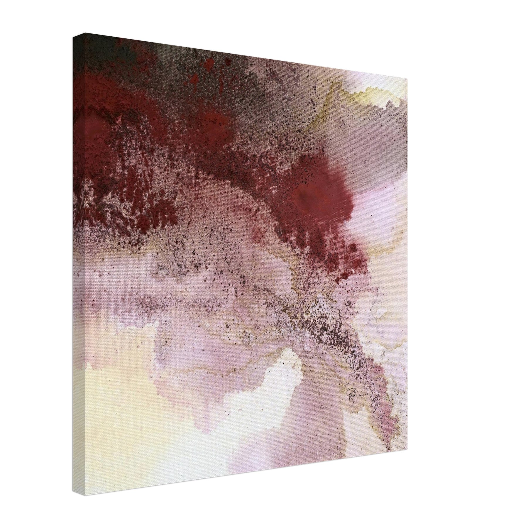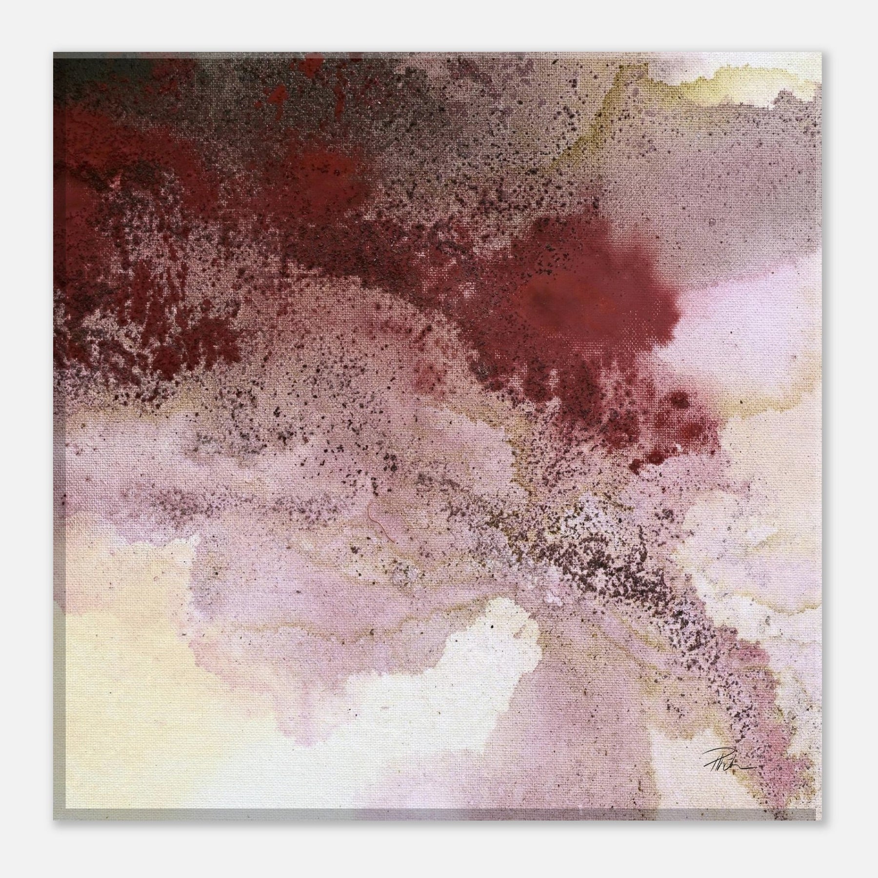 Ein Bild wie ein leiser Herbstspaziergang: Bordeaux breitet sich über Rosé, Grau und Sand aus, dazwischen feine Kaffee-Körnung – offen, fließend, mit zarter Tiefe. Dieser Leinwanddruck übersetzt die Aquarell-Anmutung der Acrylmalerei in eine hochwertige, detailreiche Reproduktion: weiche Verläufe, lebendige Textur, ruhige Farbigkeit.