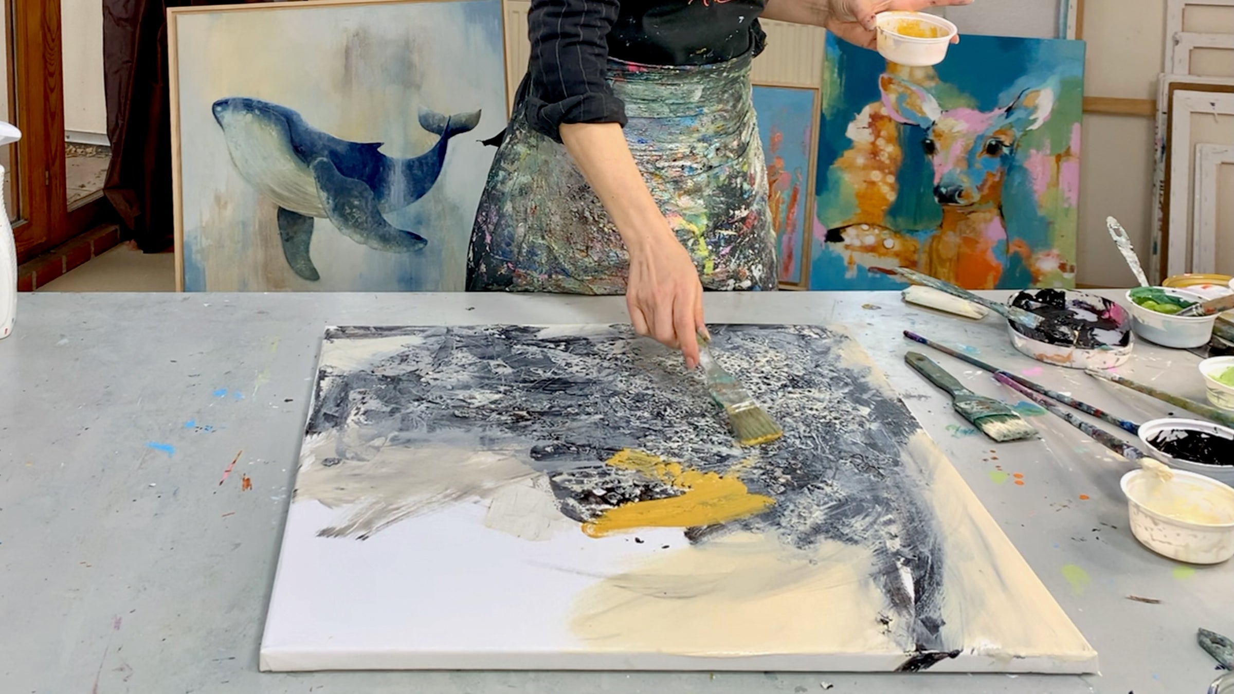 Ich male aus dem Moment heraus – mit Struktur, Naturmaterialien und einem feinen Gespür für Ruhe und Bewegung.